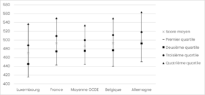 Figure 4 Score (de 0 à 1000) des compétences en lecture par quartiles de l’indice de statut socio-économique ; Source : OCDE, PISA 2018